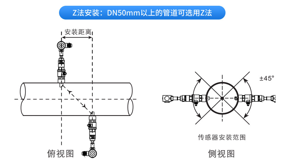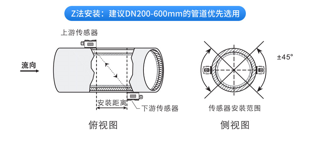 外夾壁掛式超聲波流量計利用了低電壓,多脈沖時差原理