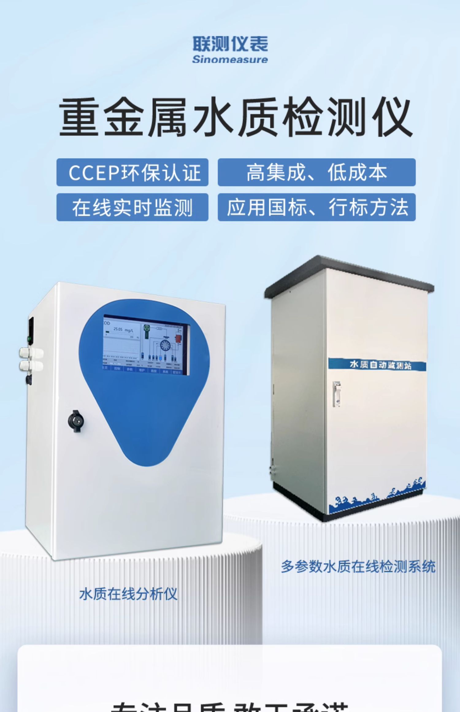 聯測在線水質重金屬檢測儀可監測:六價鉻/總鉻/總鐵/總/總銅/總鎳/總鋅/總鉛/總鍋/總鉑/總銀/總釩/總鎢/鋁/鈣離子。