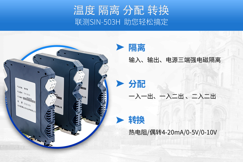 將PT100等熱電阻跟熱電偶信號轉(zhuǎn)換成各種電流、電壓等標準模擬量信號,可以與PC機、PLC、DCS等實現(xiàn)工控監(jiān)測連接??垢蓴_能力強,遠傳不受其他設(shè)備影響。輸入、輸出選擇范圍寬,準確度高。電源可選擇,導(dǎo)軌安裝便于檢測與安裝。廣泛應(yīng)用于各種對溫度集中測量的監(jiān)控系統(tǒng)中。