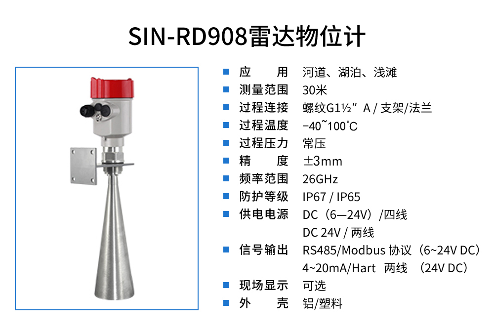 雷達(dá)水位計天線發(fā)射極窄的微波脈沖,這個脈沖以光速在空間傳播, 遇到被測介質(zhì)表面,其部分能量被反射回來