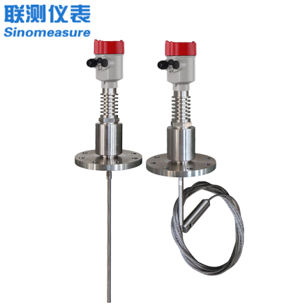 導(dǎo)波雷達(dá)發(fā)出的高頻微波脈沖沿著探測(cè)組件(鋼纜或鋼棒)傳播, 遇到被測(cè)介質(zhì),由于介電常數(shù)突變,引起反射,一部分脈沖能量被反射 回來(lái)。發(fā)射脈沖與反射脈沖的時(shí)間間隔與被測(cè)介質(zhì)的距離成正比。