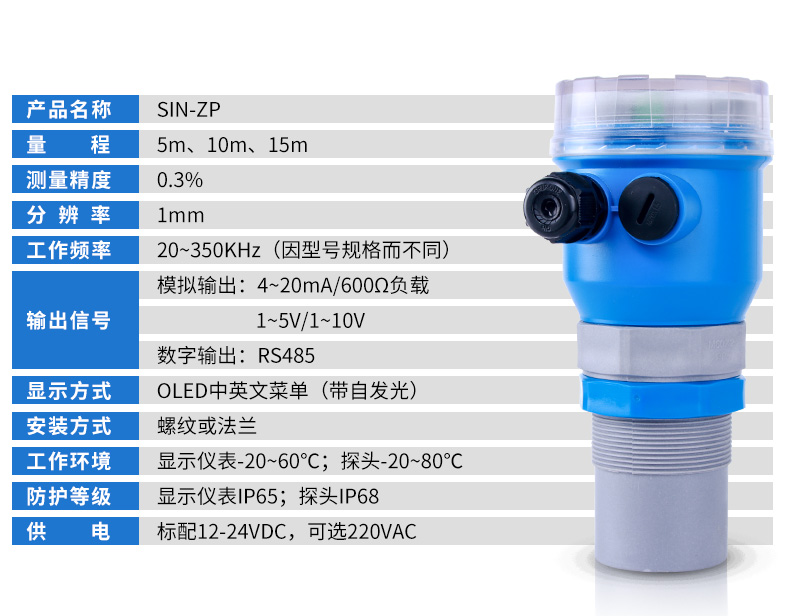 聯測_SIN-ZP_0.3%精度_超聲波液位計_罐體專用_